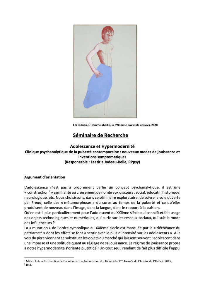 1 Miller J.-A. « En direction de l’adolescence », Intervention de clôture à la 3ème Journée de l’Institut de l’Enfant, 2015.